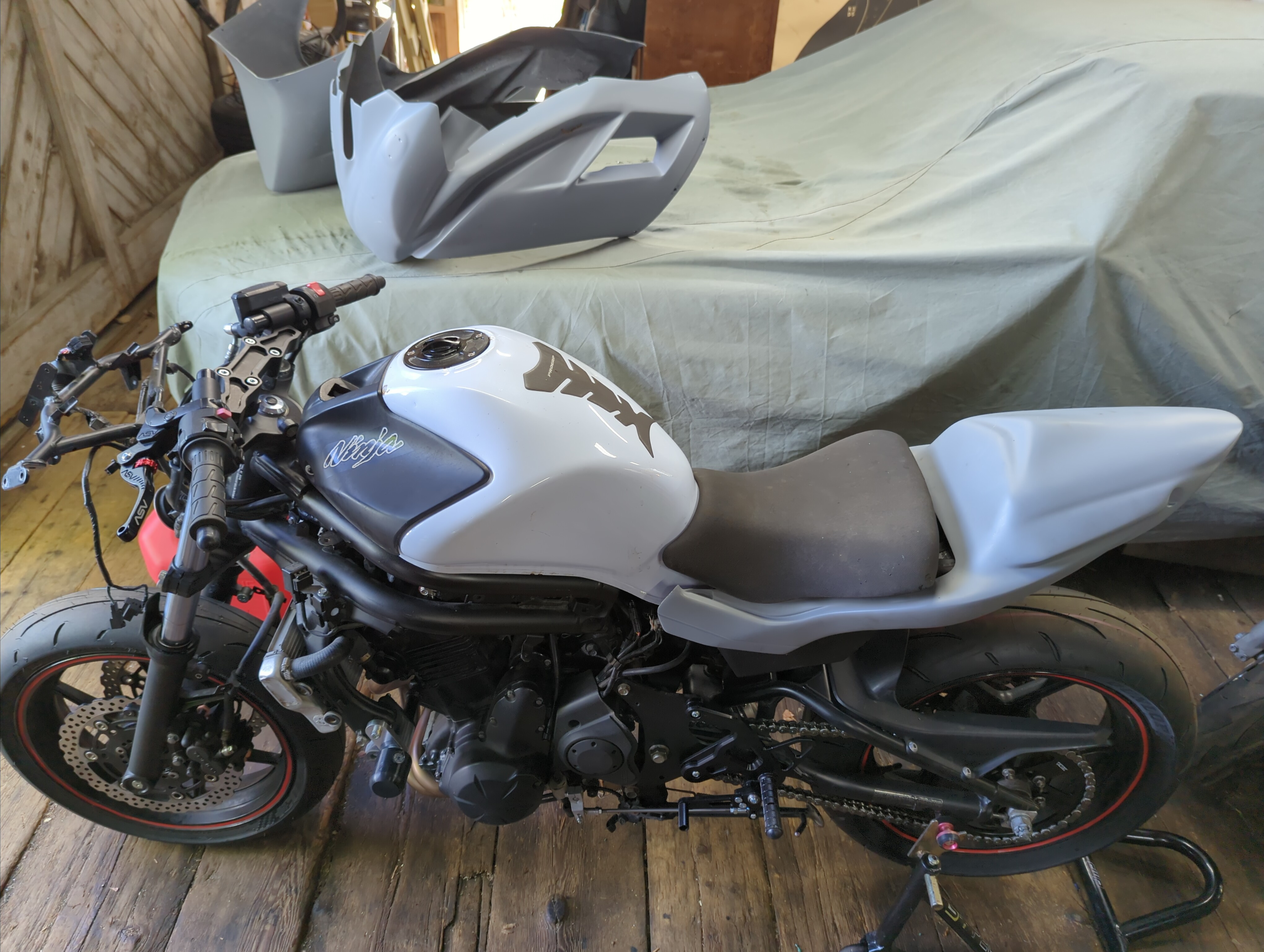 The final step is to cut and install the Sharkskinz race fairings. Although not technically needed for this level of bike, it seemed like a good upfront investment and a good selling point if a racer expresses interest in buying it.